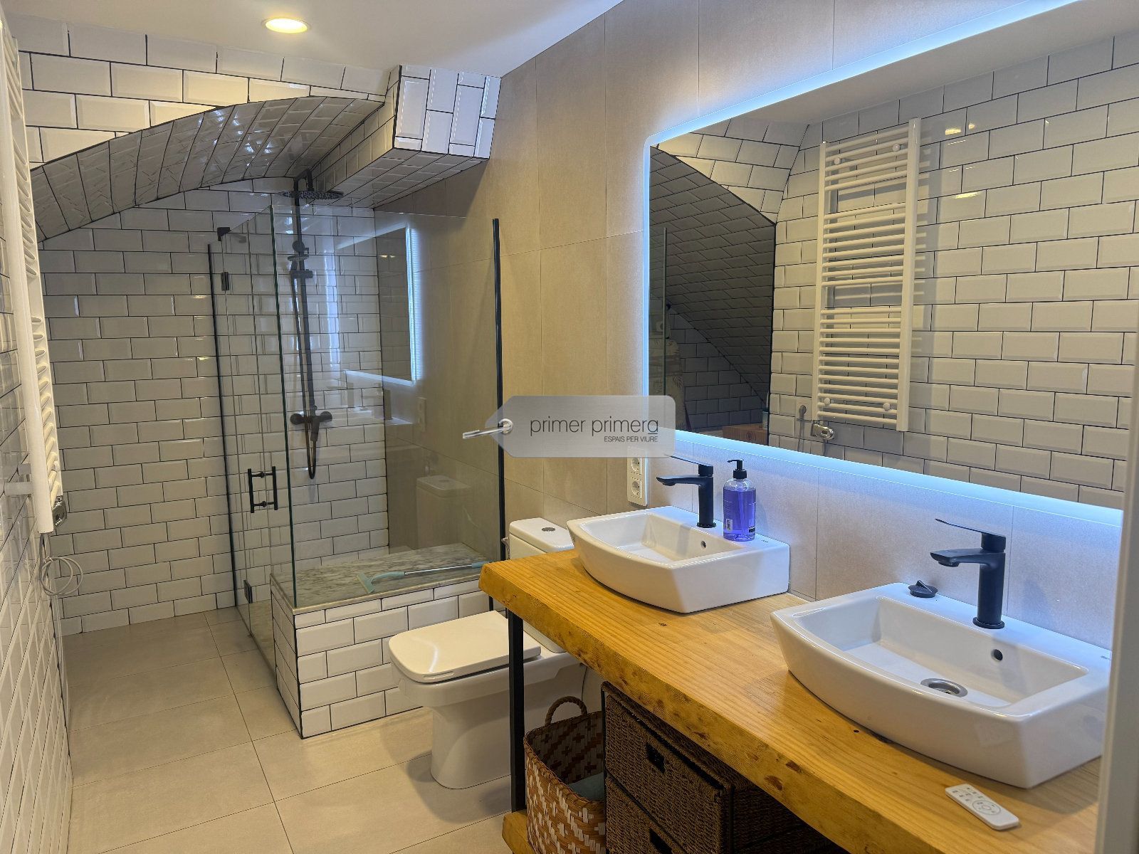 En la planta superior un dormitorio doble con una zona de vestidor y un baño completo con plato de ducha, tiene un aire acondicionado.